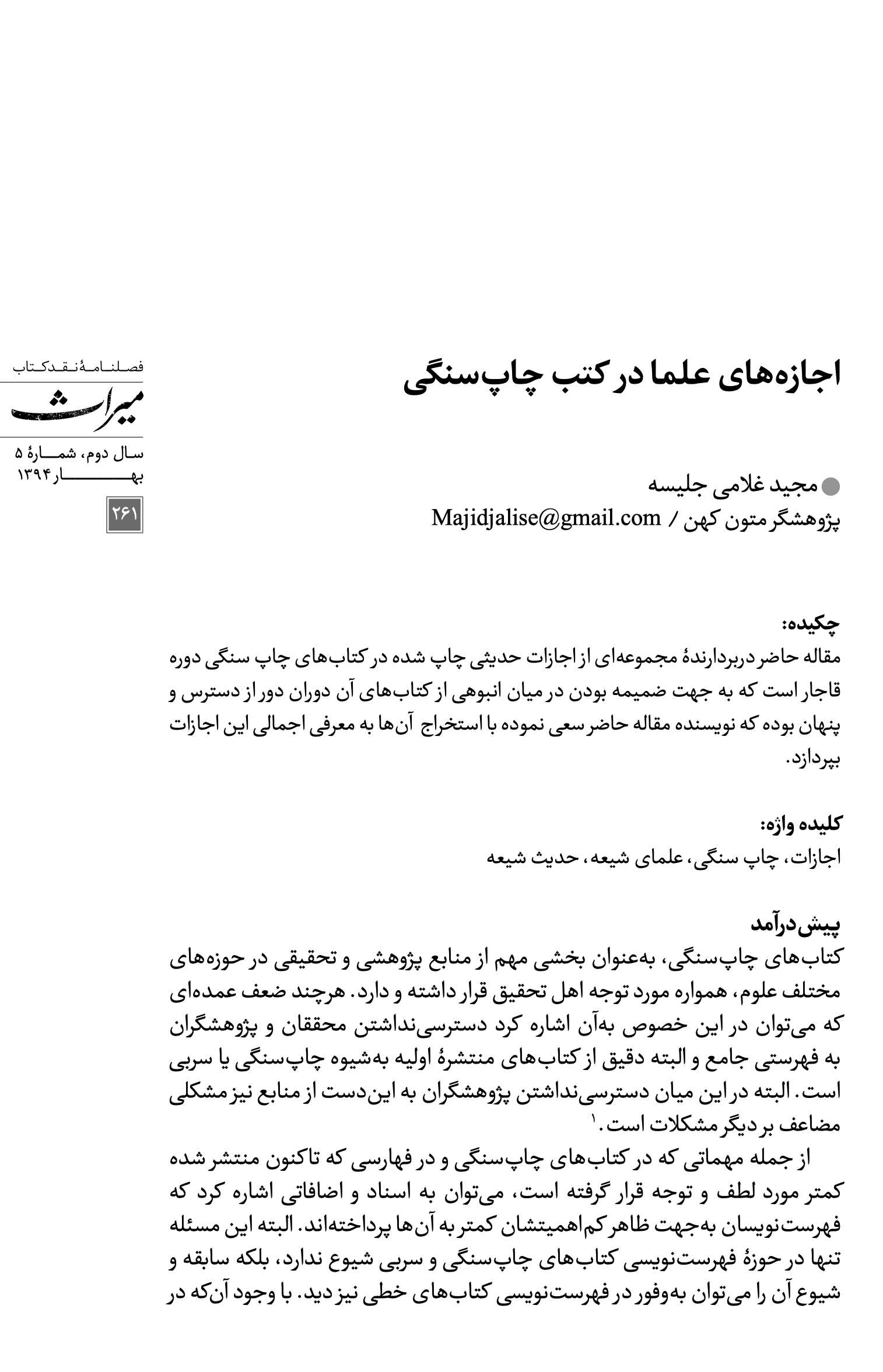 مشخصات نشر: فصلنامه نقد کتاب میراث. پیاپی ۵، بهار ۱۳۹۴، صص. ۲۶۱-۳۲۴.